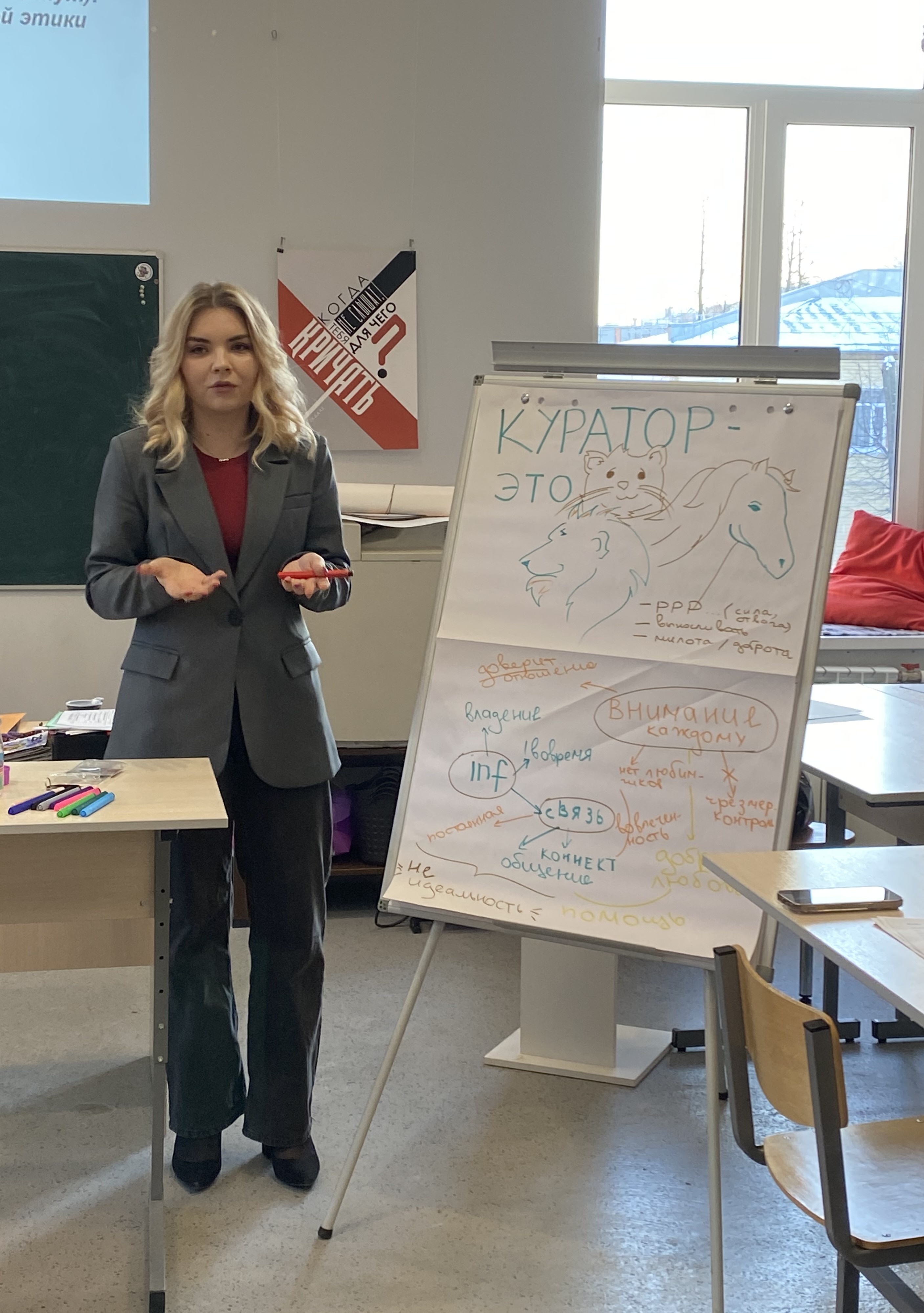 В рамках обучения эксперты осветили важнейшие аспекты кураторской деятельности. Вопросы психолого-педагогического сопровождения, профилактики конфликтов и эмоционального выгорания раскрыла психолог КТМУ А. Г. Гречканева. Нормативно-правовые основы работы представила ведущий специалист учебно-аналитического отдела Т. В. Перелыгина. Блоки, посвященные воспитательной деятельности и современным технологиям работы с группой, провела и.о. советника по воспитанию Е. А. Гасимова.