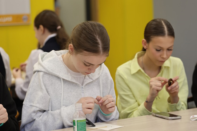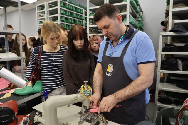 Кроме того, ребята смогли поработать с материалом и забрать результат своего труда в качества памятного сувенира. На профессиональной пробе в раскройном цехе школьники под руководством педагога и амбассадоров «Профессионалитета» проектировали и собирали миниатюрную обувь: выбирали фактуры и цвета кожаных заготовок, осваивали технику затяжки, клеевые методы и работу с ручным прессом. Финальным акцентом стала установка декоративной заклепки-хольнитена.