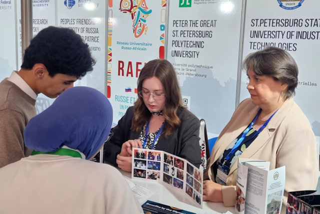В составе Российско-Африканского сетевого университета экспозиционный стенд СПбГУПТД посетили не только потенциальные студенты из Марокко и их родители, но и представители вузов, имеющие смежные направления подготовки, желающие развивать академическое сотрудничество и программы обмена.