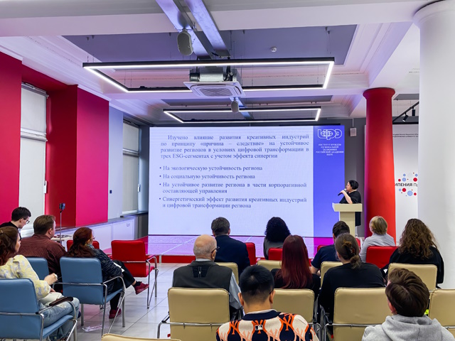 На базе университета в рамках конференции прошла работа секции, посвященной тенденциям развития креативной экономики регионов в условиях цифровой трансформации. Более 30 экспертов представили исследования по развитию экономики в условиях цифровизации. Участники обсудили вопросы устойчивого развития креативных индустрий, их вклад в социально-экономическое развитие регионов, формирование цифровых экосистем и повышение цифровой зрелости отрасли.