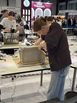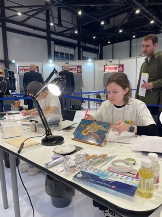 Кристина Иншакова провела визуальное исследование и определила характеристики поступившего на реставрацию образца живописи. Далее она составила план реставрационных мероприятий, подобрала необходимые инструменты. Студентка собрала подрамник, натянула картинку, заложила кромки и углы холста, подвела грунт в местах утрат. Каждый этап важно было зафиксировать в пояснительной записке. За свою работу Кристина взяла бронзу. Примечательно, что колледж впервые участвовал в этой номинации и сразу занял призовое место.