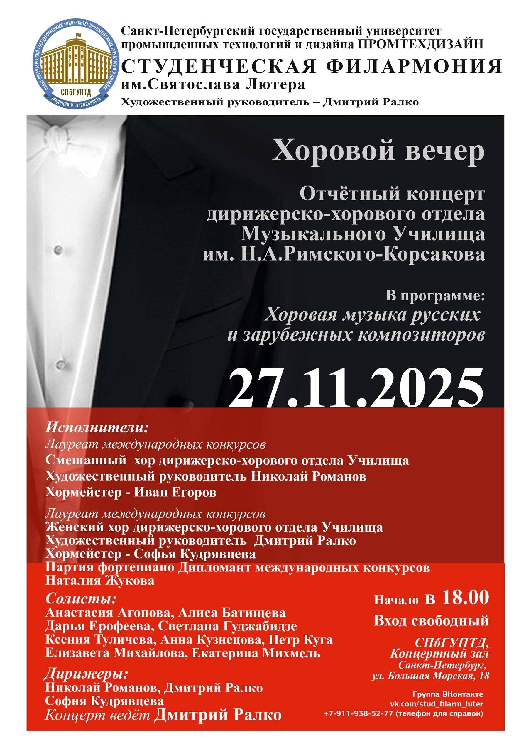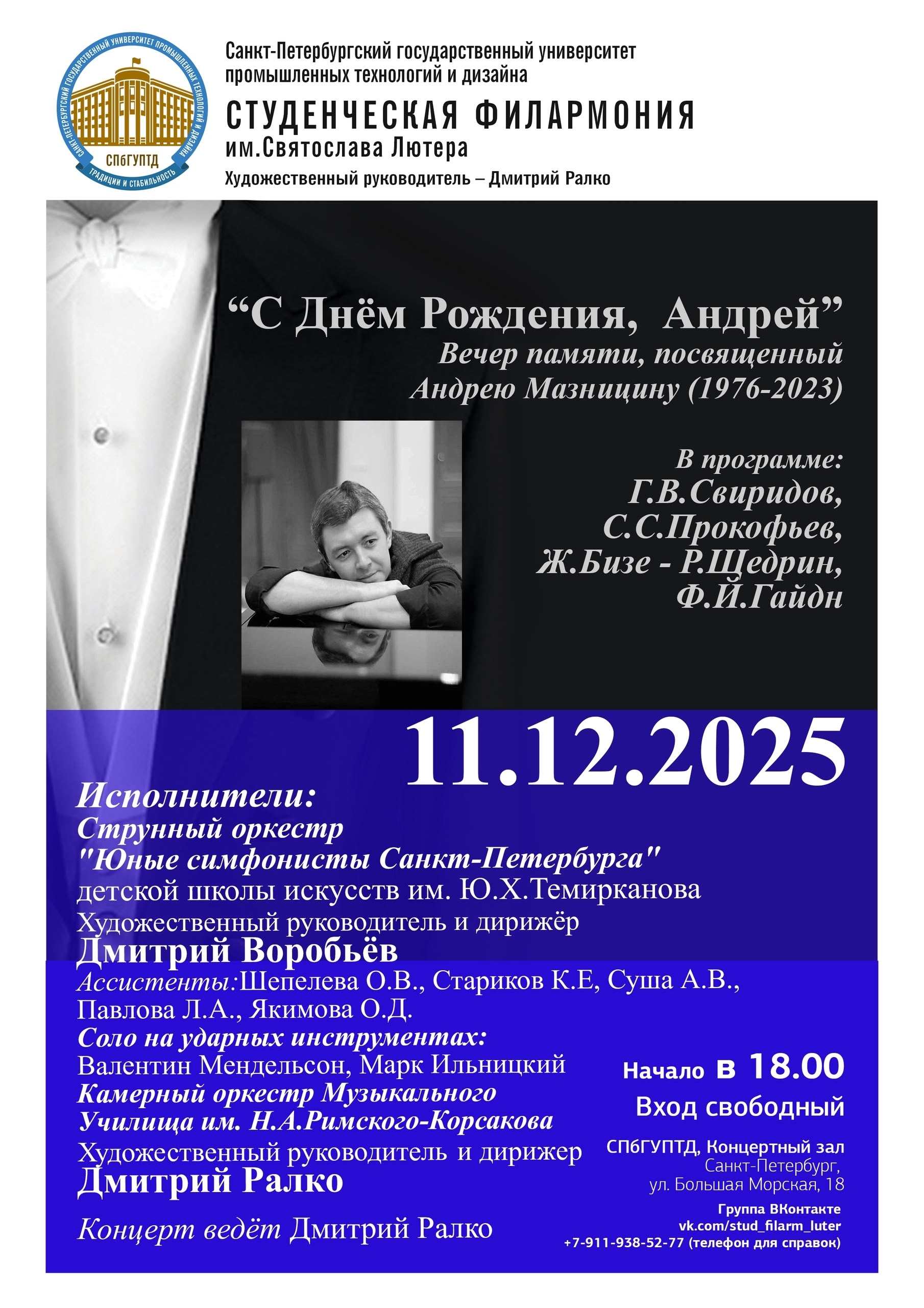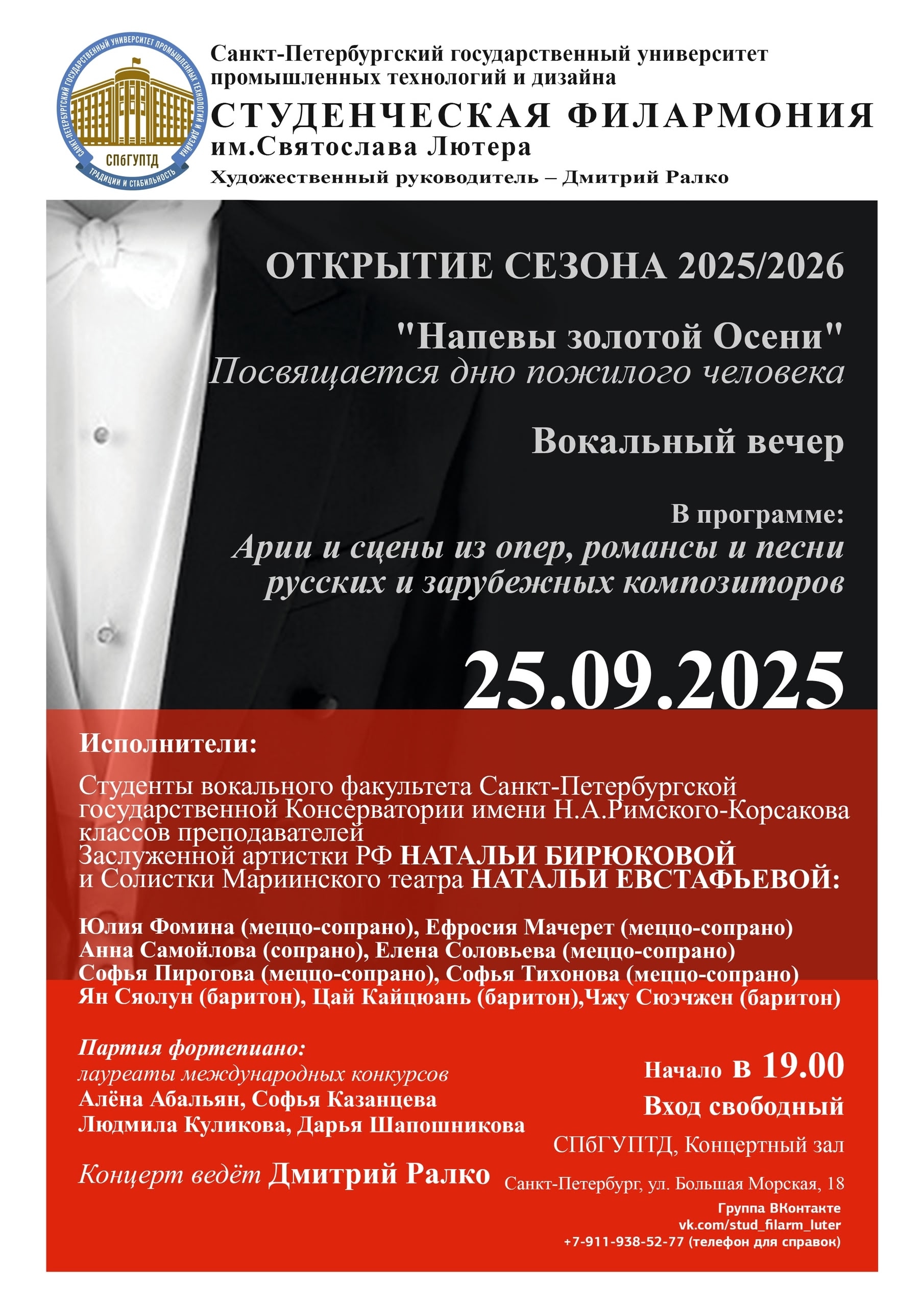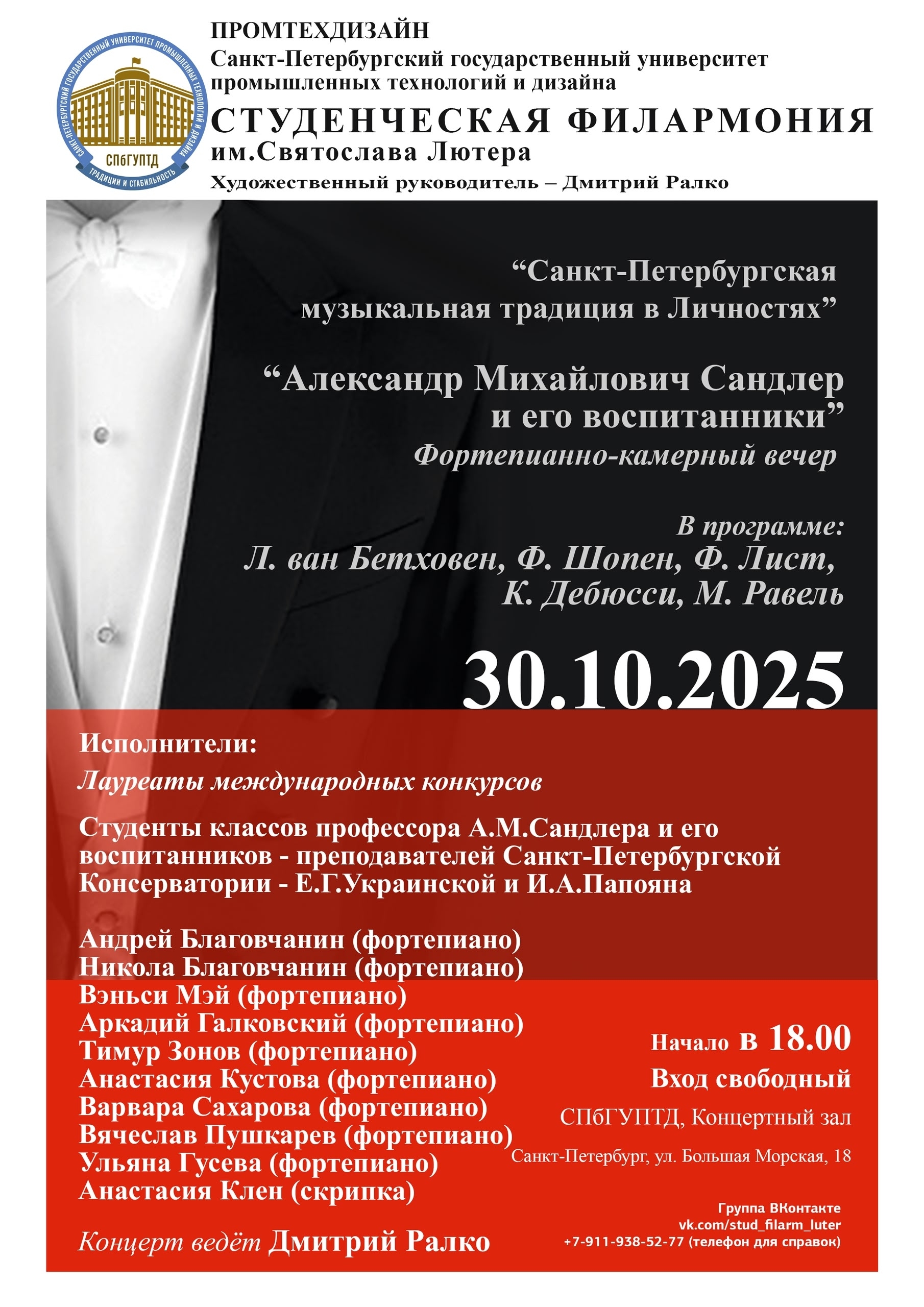 «Студенческая филармония им. Святослава Лютера» - культурно-просветительская программа основана в 2004 году в Санкт-Петербургском государственном университете промышленных технологий и дизайна по инициативе С.Р. Лютера, и является статусным проектом и гордостью вуза.