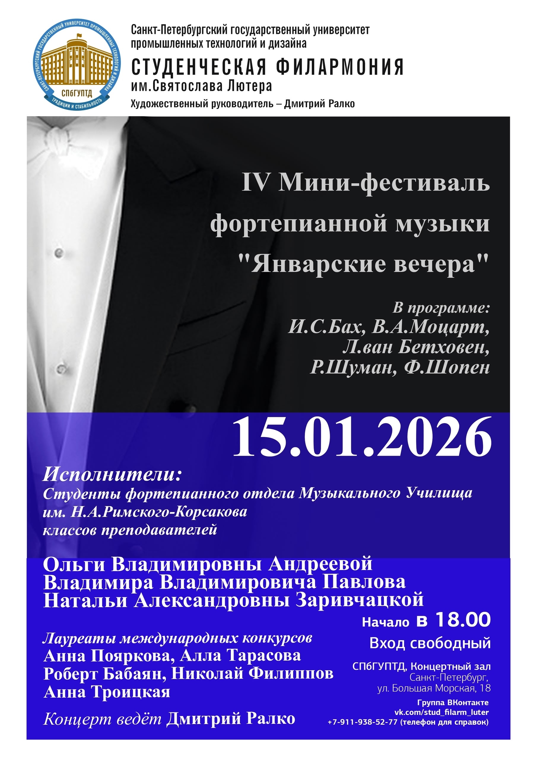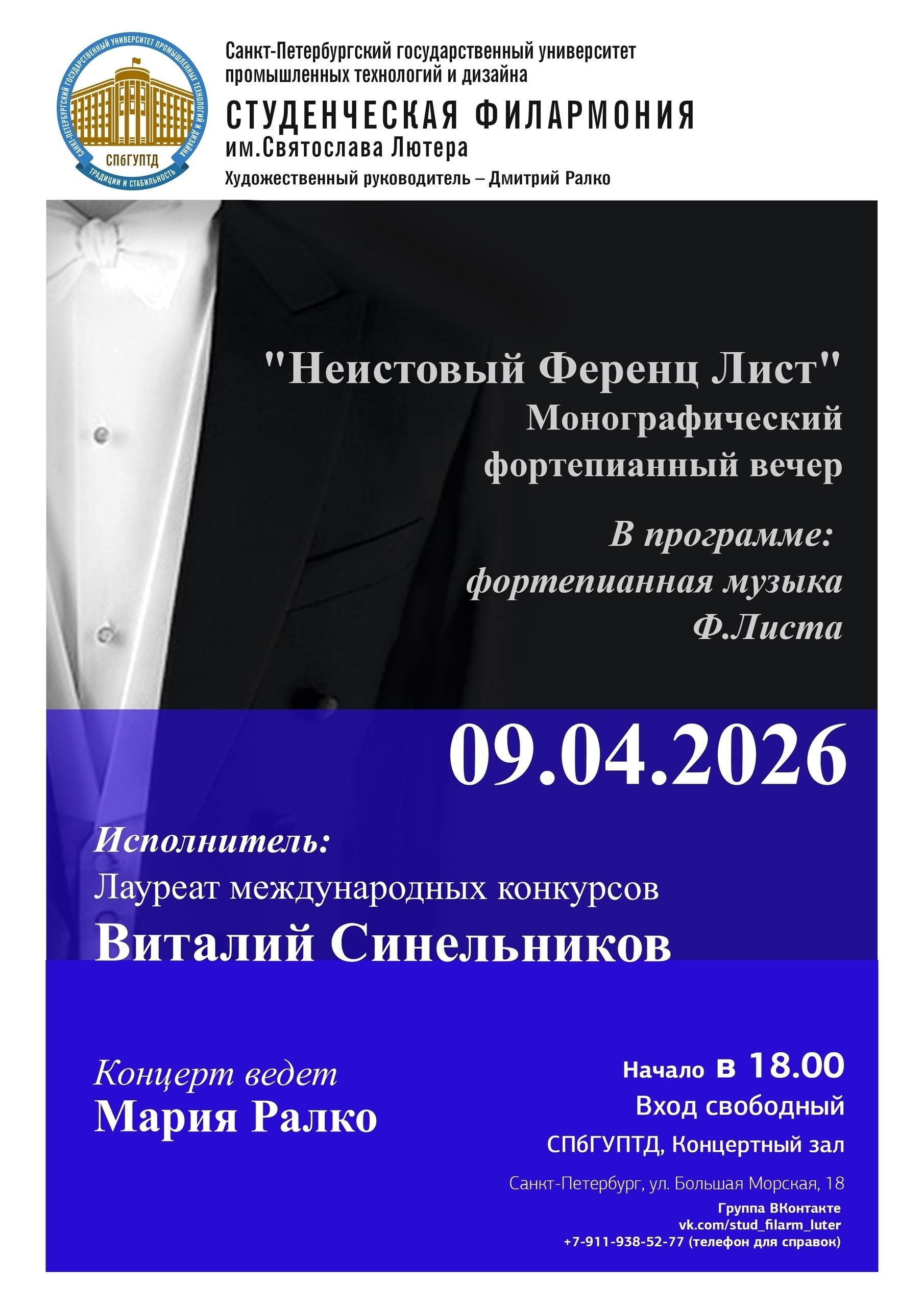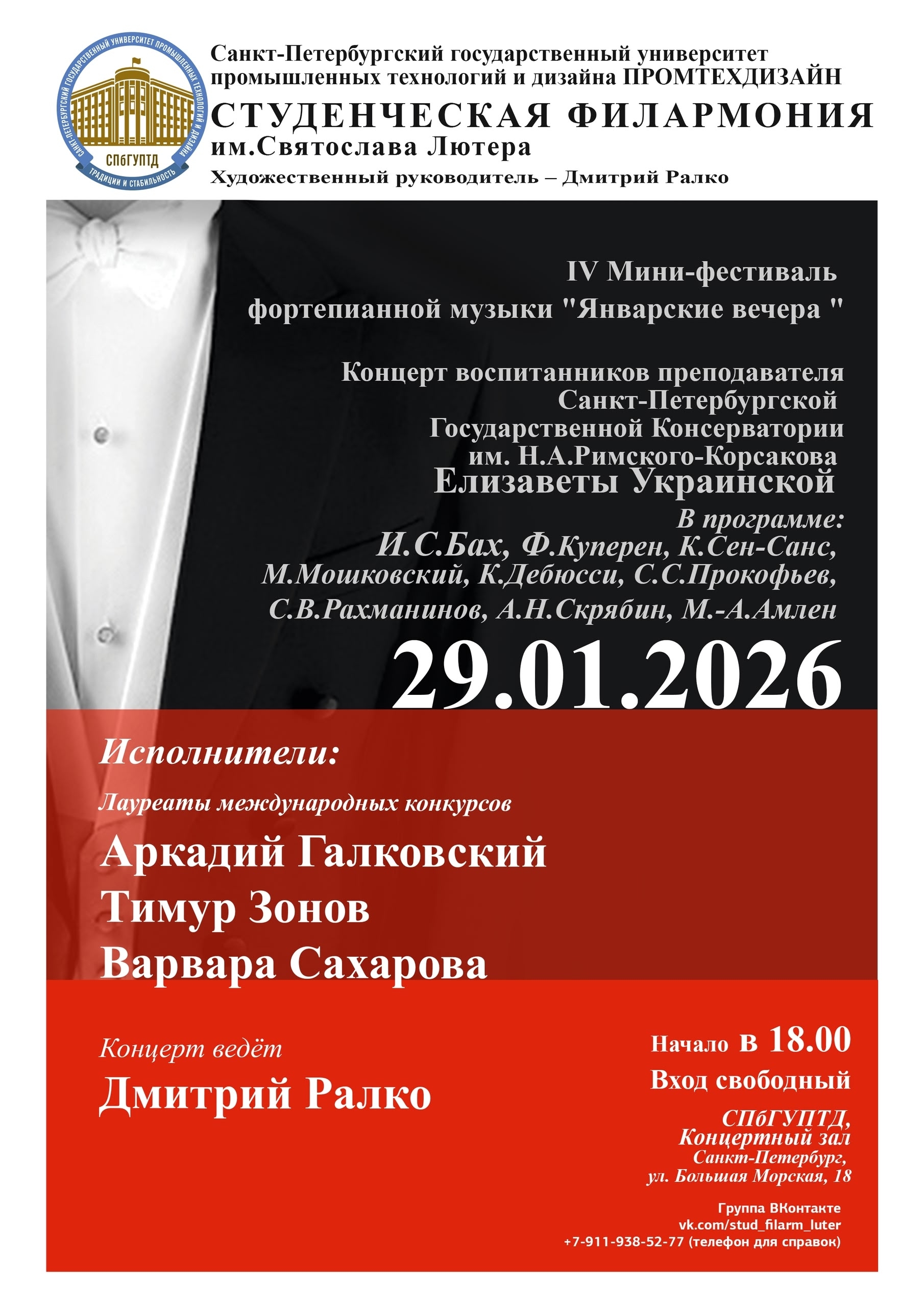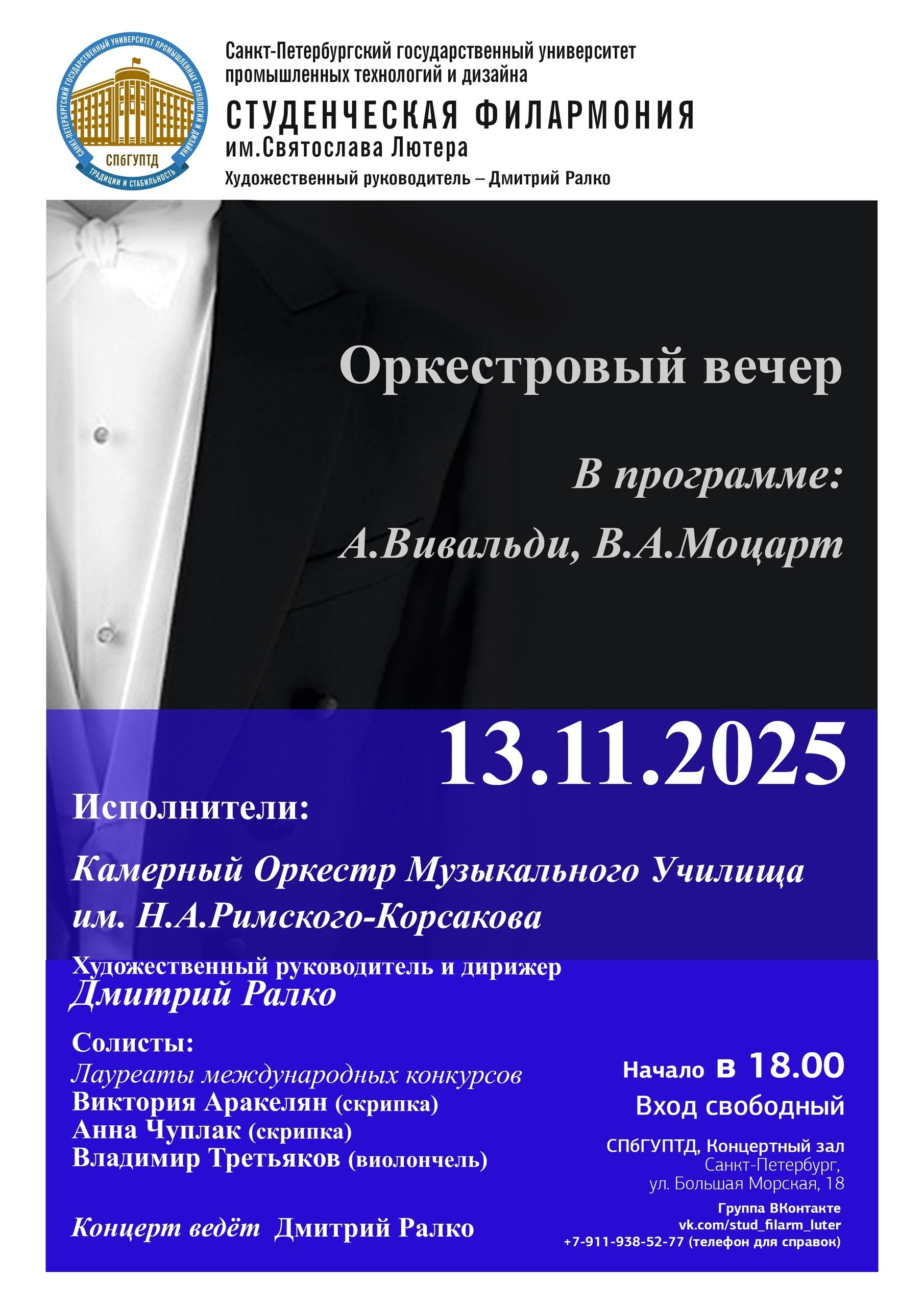 «Студенческая филармония им. Святослава Лютера» - культурно-просветительская программа основана в 2004 году в Санкт-Петербургском государственном университете промышленных технологий и дизайна по инициативе С.Р. Лютера, и является статусным проектом и гордостью вуза.