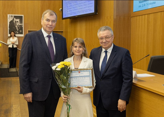 На фото наши лауреаты: старший преподаватель кафедры информационно-измерительных технологий и систем управления Марина Слюта, начальник отдела по работе со студентами ВШТЭ Надежда Федорец, преподаватель кафедры прикладной математики и информатики Мария Новикова.